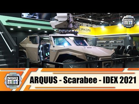 At IDEX 2021, the International Land Defense Exhibition in Abu Dhabi, United Arab Emirates, French Company ARQUUS officially launched for the worldwide military market, a new generation of wheeled light reconnaissance armored vehicle, called the Scarabee. Arquusโ most advanced vehicle incorporates the most modern and innovative technologies developed by the company, including hybrid drive, energy management, suspension height adjustment, independent rear steering axle, among many others.
